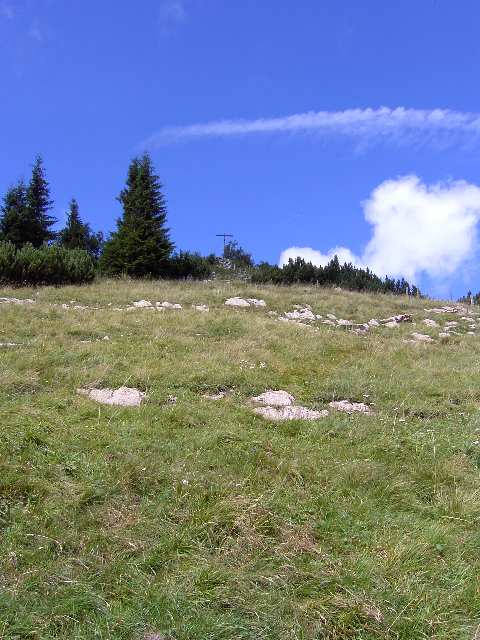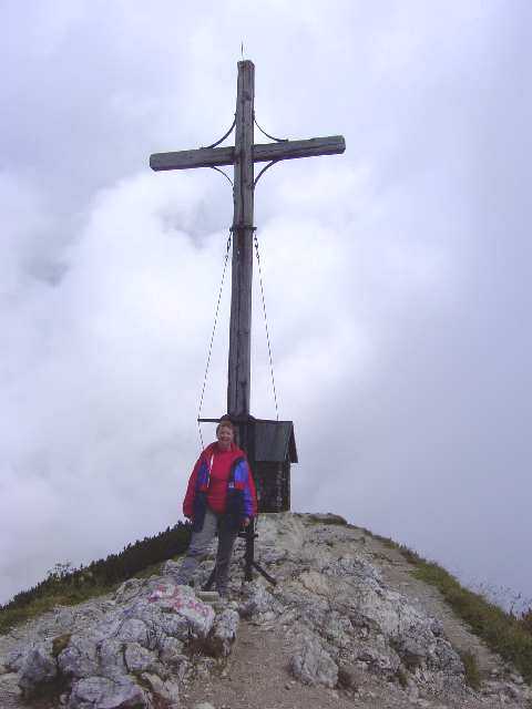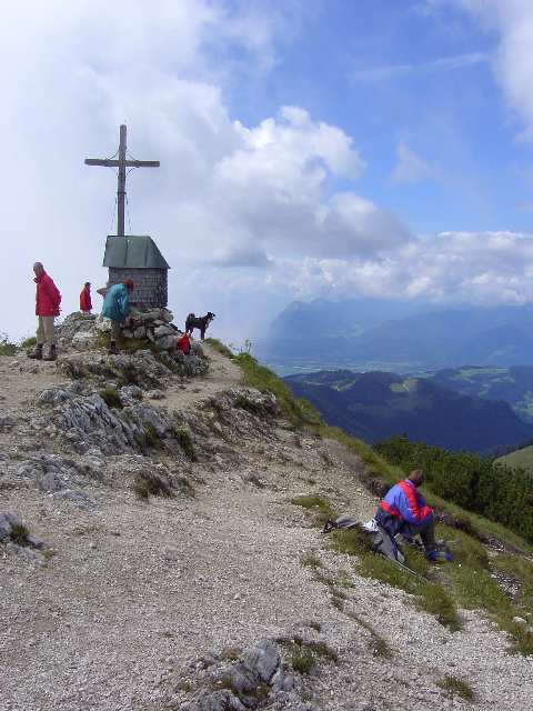 Der obere Abschluss eines Berges ist das Gipfelkreuz.
