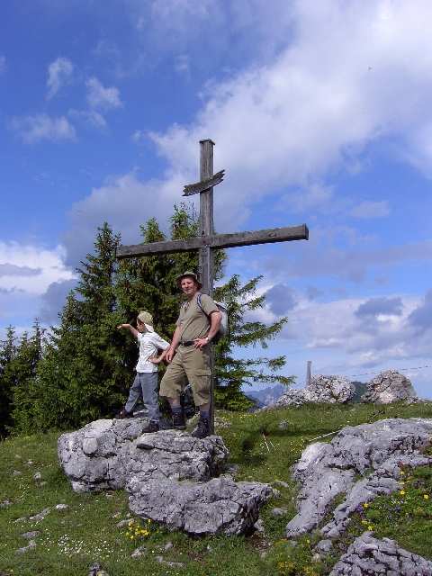Der obere Abschluss eines Berges ist das Gipfelkreuz.